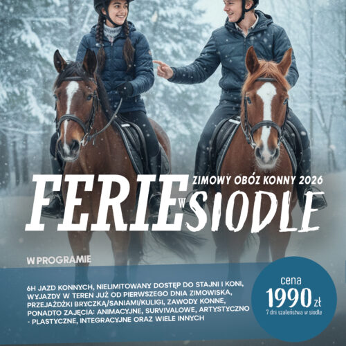 - min. 1h (60 minut) jazd konnych dziennie z instruktorem