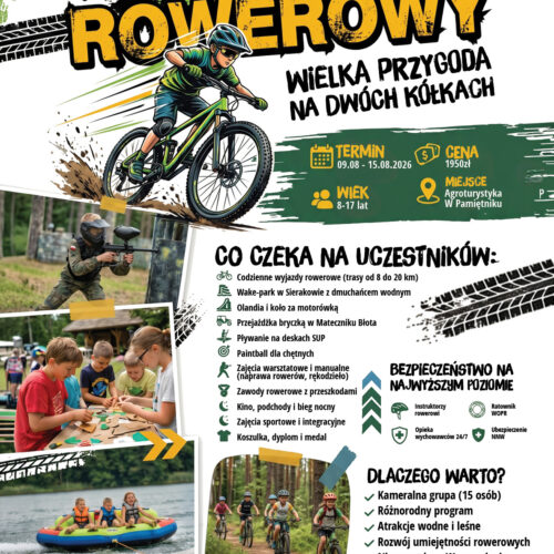 - 15.08.2026 w godzinach do 12.00 – wyjazd uczestników z Bazy Agroturystycznej W Pamiętniku((wyjazd we własnym zakresie), ostatnie świadczenie – śniadanie